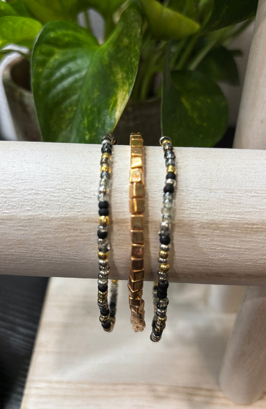 "Metal Muse" - Handmade Seed Bead Stretch Bracelet Set of 3