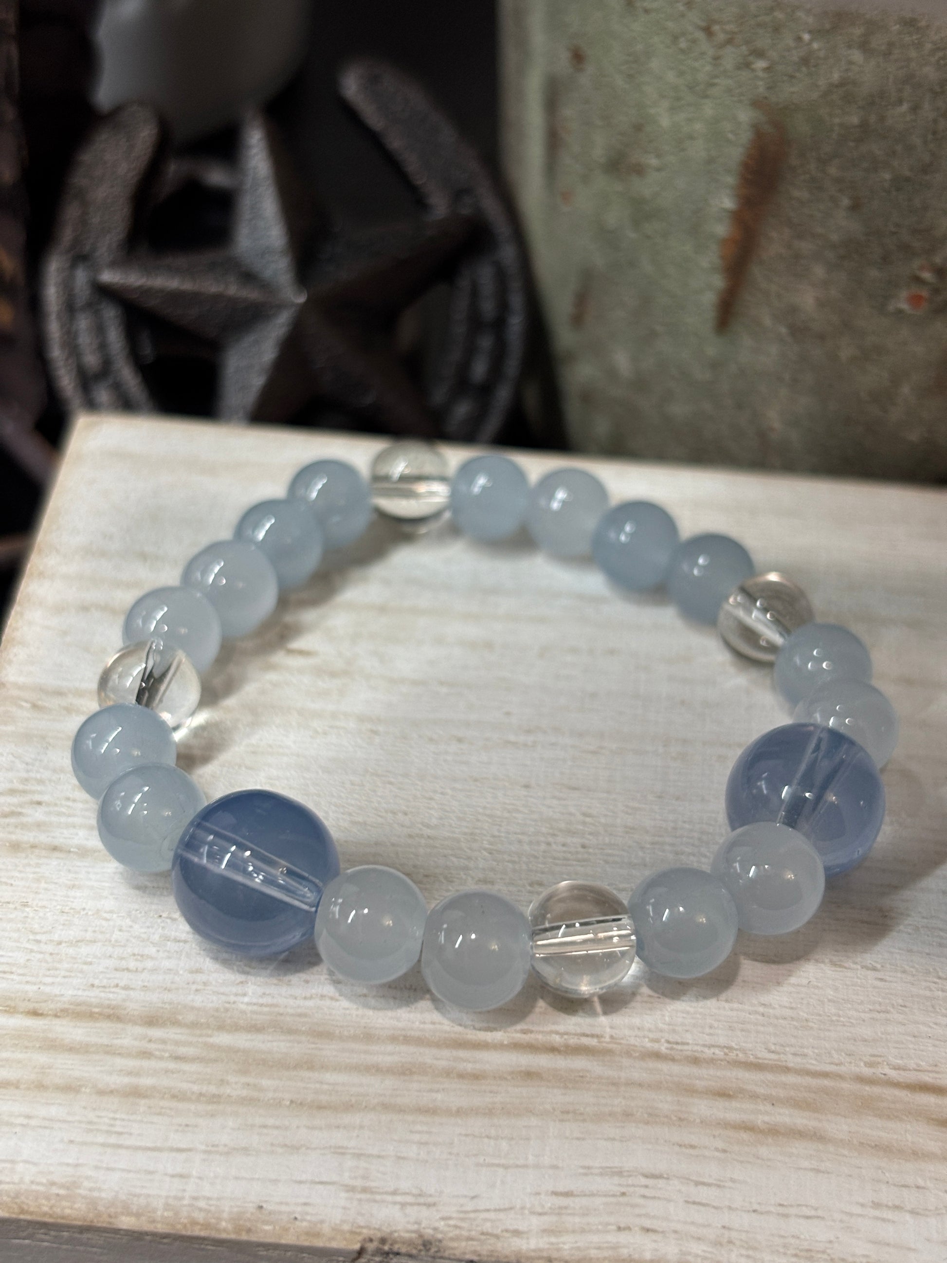 Introducing the Samantha II bracelet, a handcrafted piece that exudes elegance and sophistication. This beautifully designed bracelet features a stunning blue theme, perfect for those who appreciate the finer things in life. It's not just a bracelet, it's a statement of style and grace.