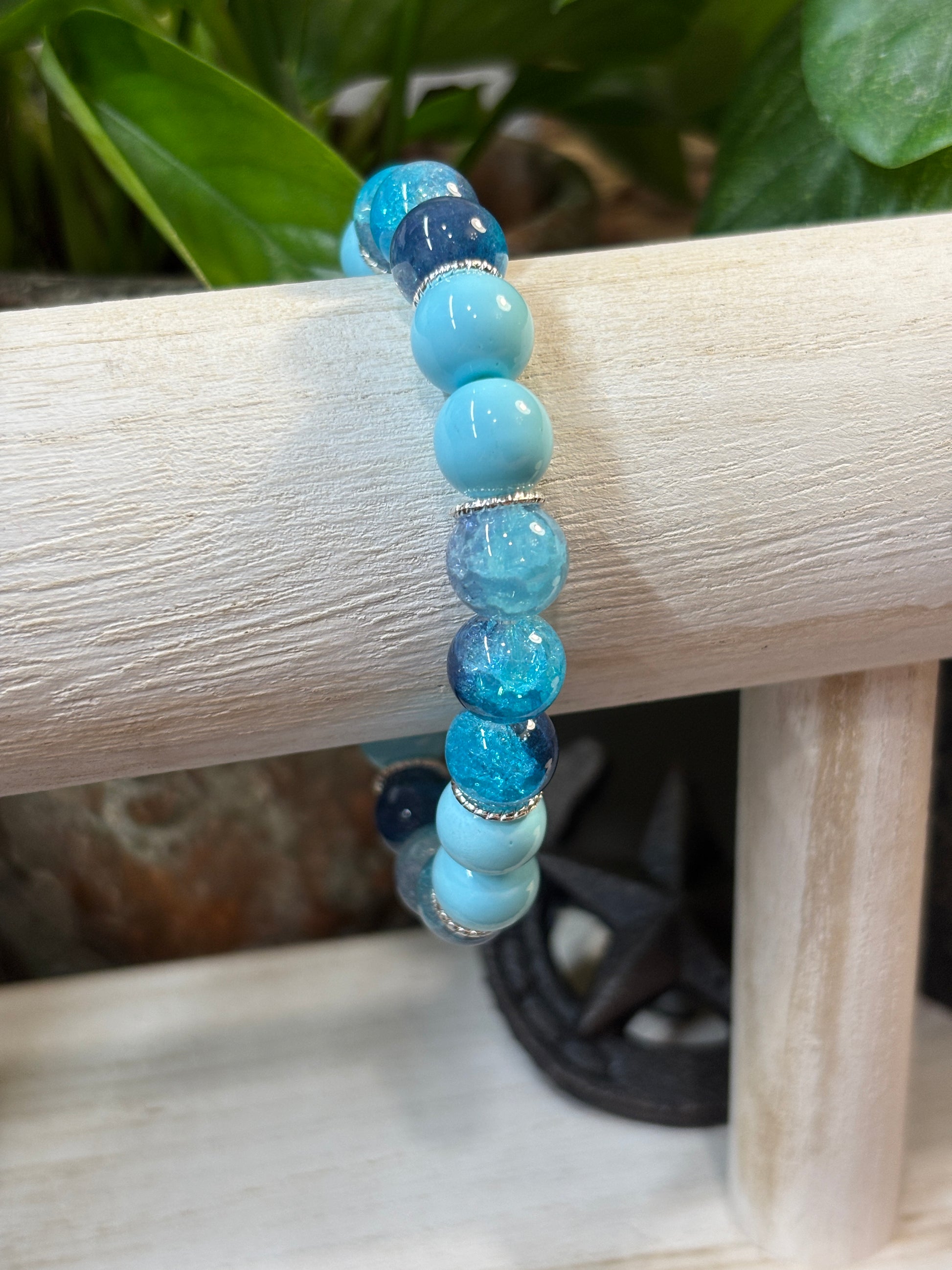 Introducing our Sylvia bracelet, a timeless piece that exudes elegance and sophistication. This beautifully crafted bracelet features a stunning array of blue hues, reminiscent of a clear summer sky or the depths of a tranquil ocean. Each stone is meticulously selected to ensure a perfect harmony of color and light. Whether worn for special occasions or everyday wear, the Sylvia bracelet is sure to add a touch of grace and beauty to any outfit.